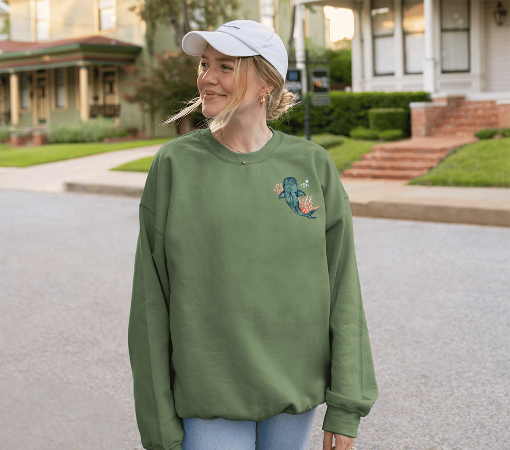 Wrap yourself in cozy ocean vibes with this Watercolor Whale Shark Crewneck, printed on the classic Gildan 18000. Featuring a dreamy watercolor whale shark swimming among coral, this sweatshirt is perfect for beach lovers, marine biologists, divers, aquarium keepers, and anyone who loves coastal style.